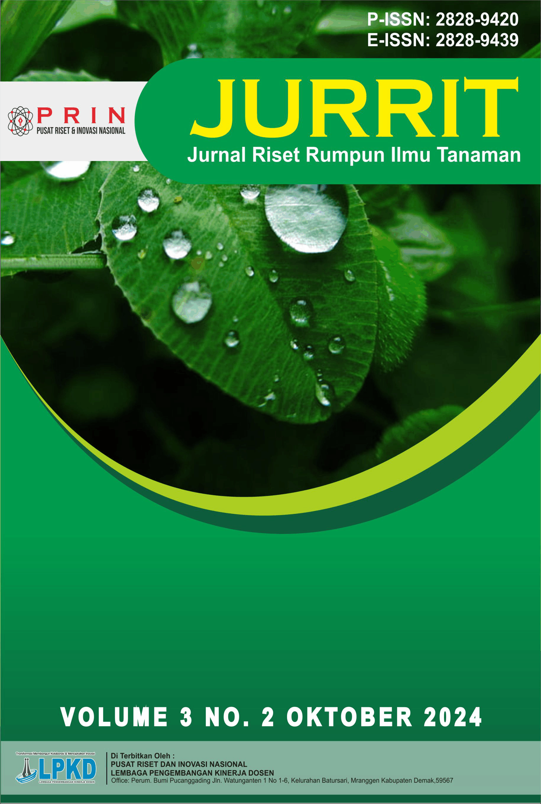 Vol. 4 No. 1 (2025)JURRIT: Jurnal Riset Rumpun Ilmu Tanaman: ISSN: 2828-9420 (cetak), ISSN: 2828-9439 (online) adalah jurnal yang ditujukan untuk publikasi artikel ilmiah yang diterbitkan oleh Pusat riset dan Inovasi Nasional, Lembaga Pengembangan Kinerja Dosen. Jurnal ini adalah jurnal Riset Rumpun Ilmu Tanaman yang bersifat peer-review dan terbuka. Bidang kajian dalam jurnal ini termasuk sub rumpun Ilmu Pertanian dan Perkebunan, Ilmu Sosiologi Pertanian, Ilmu Kehutanan. Jurnal Riset Rumpun Ilmu Tanaman menerima artikel dalam bahasa Inggris dan bahasa Indonesia dan diterbitkan 2 kali setahun: April dan Oktober.